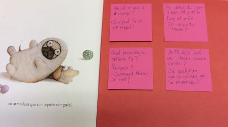 En fait, on veut les aider à prédire et à déjà commencer à comprendre le livre. On connait nos élèves, on peut donc anticiper, mais rester à l’écoute, être souple et ne pas hésiter à modifier nos plans. On travaille à amener les élèves là où on veut aller.