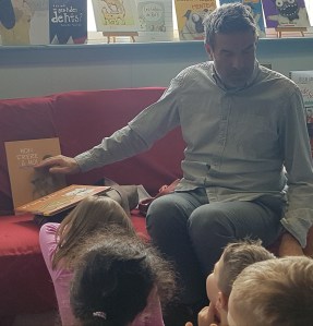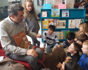 Cette année, nous avons écrit à un auteur dont les textes nous ont marqués. Suite à la lecture du superbe Mon frère et moi (Y. Nadon), les élèves, qui connaissaient aussi les autres oeuvres de l’auteur et se sont mis, spontanément à échanger sur leur album préféré. La porte était grande ouverte pour écrire et partager notre coup de cœur avec l’auteur et lui faire part des raisons pour lesquelles son histoire nous avait touchés, en plus de pouvoir lui poser des questions. Le texte a donc été commencé en écriture interactive avec toute la classe et terminé en écriture partagée en petits groupes. Durant la semaine, quatre petits groupes d’élèves ont travaillé avec moi, chacun selon leurs besoins spécifiques en lien avec les conventions d’écriture. Nous avons pu, à la fin de la semaine, partager leur travail avec le reste du groupe avant d’envoyer la lettre à l’auteur. Les élèves attendaient une réponse écrite…c’est plutôt une visite qu’ils ont reçue…avec une invitée spéciale en prime. Quelle joie!