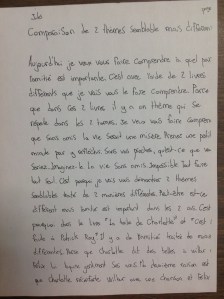 Texte d’un élève de 6e année, classe de Janique Arseneault