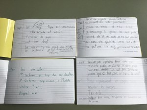 À toutes les années, je m’assure de laisser des traces aux enseignants du niveau suivant. Dans leur bac de livres, chaque enfant a un petit cahier dans lequel j’ai pris des notes (ainsi que tous les intervenants en classe: stagiaires, orthopédagogue, aide-enseignante,etc…) tout au long de l’année. Ce sont des notes sur de courts entretiens, sur leur niveau de lecture, sur ce que cet élève travaillait, les stratégies qu’il utilisait, ou au contraire celle qu’il devrait plus utiliser. C’est écrit de façon assez simple, j’ai noté la date et écrit quelques commentaires.