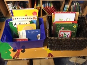 Une fois le lien trouvé entre nos livres, on rassemble tous les livres qui ont ce lien, on les regroupe dans des bacs et on les place un peu partout sur les tables dans la classe.