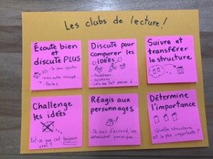 Même si mon expérience se situe surtout au niveau théorique, j’ai travaillé à la préparation d’un premier club de lecture avec ma collègue de 3e année et ensuite, je l’ai expérimenté avec ma classe.