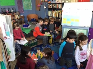 Habituellement, la jasette du livre est la première chose qu’on fait le matin en classe. Certaines classes accordent 5 minutes environ, chaque jour, en demandant aux élèves de cibler un seul aspect de discussion parmi les choix qui s’offrent à eux. Cela évite aussi les dérives dans les discussions ou d’avoir à gérer des comportements. Quand on sait qu’on a peu de temps, on va droit au but et l’on n’a pas le temps de se désorganiser. Comme ils aiment bien la jasette, et qu’elle devient vite populaire, ils se dépêchent à se déshabiller et faire leur routine du matin. Ils sont disponibles, et comme ils ont lu leurs livres le soir avec leur parent, ils sont prêts à en discuter. Mes élèves apportent leur pochette de livres au coin rassemblement et s’installent à côté d’un copain, ils ont le choix des partenaires. Évidemment, on veut qu’il fasse seul les bons choix, et si cela leur a bien été enseigné (grâce à l’atelier d’écriture et de lecture), vous n’interviendrez pas souvent. Par contre, j’insiste pour qu’on ne se place pas toujours avec la même personne tous les matins. Ils peuvent jaser à 2 ou à 3. Ma collègue leur demande de jaser à quatre. De cette façon, elle les prépare pour le club de lecture. Dans d’autres classes, ils sont à une table et discutent avec la personne près d’eux. Dans ma classe, ils peuvent jaser maximum 15 minutes, j’utilise la minuterie.