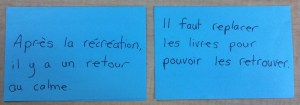 La troisième partie est de faire transférer l’habileté ou la stratégie pratiquée sur leurs propres textes. Les élèves réviseront ou corrigeront leurs textes en utilisant l’habileté ou la stratégie utilisée pendant le travail côte à côte. Si cela est encore très difficile, ils pourraient travailler ensemble sur le texte d’un des deux élèves.