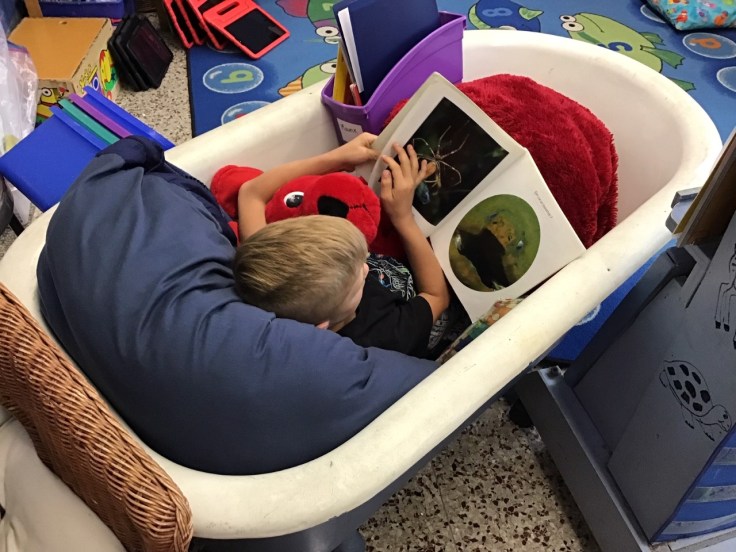Le bac de livres personnels n’est pas le seul élément à considérer pour l’atelier de lecture, mais il fait partie de tout ce qui peut aider les lecteurs à rester engagés et à apprendre. Il faut aussi s’assurer de mettre en place certains éléments : que chacun ait une place d’attribuée, la routine de l’atelier, de solides mini-leçons, des entretiens et des petits groupes fréquents accompagnés de rétroactions efficaces, sans oublier la partie de la ¨mi — atelier ¨, la mise en commun, la lecture à deux… ouf !!
