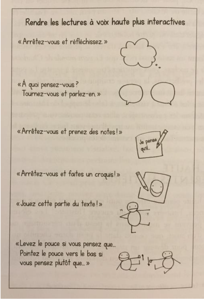 Dernière précision, la lecture interactive peut également se faire avec des textes informatifs ou d’opinions.