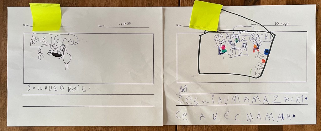 Les élèves ont aussi écrit dès le premier jour. Il y a eu des leçons explicites bâties sur mesure grâce à l’étude de leurs premiers textes, et du temps pour pratiquer et mettre en œuvre les nouvelles connaissances. Par ces écrits, nous avons appris à se connaitre les uns les autres, toujours un peu plus. Et on installait des habitudes.