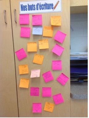 Il est important que les élèves connaissent la cible qu’ils visent. On peut ajouter à nos tableaux d’ancrage des exemples écrits par les élèves qui illustrent bien une cible d’apprentissage.