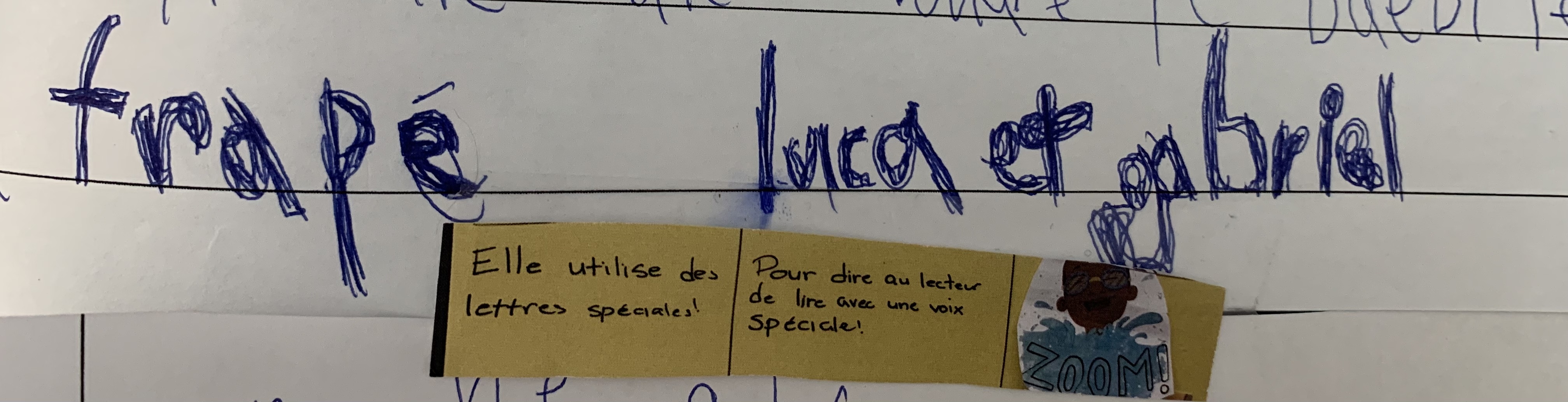 Au moment d’écrire ces lignes, nous terminions le module Écrire des récits inspirés de nos petits moments. Les élèves ont révisé le texte qu’ils voulaient publier. Pour les scripteurs débutants, un outil visuel et individuel est vraiment aidant pour soutenir ce travail. Pas besoin de chercher à créer l’outil parfait: quoi de mieux que le tableau d’ancrage de la classe, ainsi que les post-its (je n’arrive toujours pas à ajouter papillons adhésifs à mon vocabulaire…) de formes spéciales, déjà disponibles au coin écriture. Ils les connaissent par coeur: ce sont les outils parfaits!