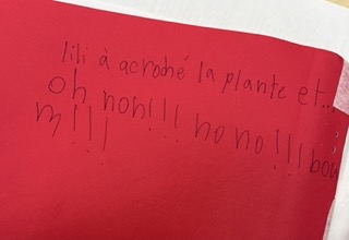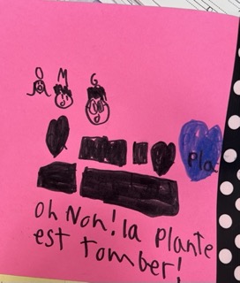 Dans ma classe de 2e année, pour la première célébration d’écriture, plusieurs élèves ont décidé de publier le texte sur demande qu’ils avaient écrit à la fin du module d’écriture narrative Écrire des séries d’histoires réalistes (Chenelière, 2019). Nous avions trouvé une idée en groupe (la fois où un élève a fait tomber une plante dans la classe), planifié ensemble et préparé un lexique.