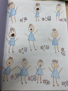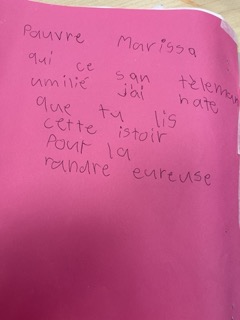 Puis, chacun a écrit l’histoire à sa façon en faisant vivre l’événement au personnage de sa série personnelle et en utilisant les stratégies apprises pour l’écriture, la révision et la correction. Ces étapes du processus étaient donc déjà faites par les élèves.
