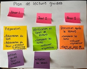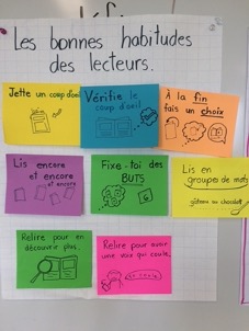 Tout d’abord, je choisis un texte au niveau de lecture du groupe. Ensuite, je m’assure de préparer les élèves à la structure du texte en leur présentant les personnages et le problème. Puis, je peux les accompagner dans la lecture du premier chapitre pour modeler le travail de réflexion attendu. Un autre journée, nous travaillerons le travail de réflexion en cours de lecture, et une autre journée, nous discuterons au sujet de l’histoire et des personnages, et ferons un plan pour la suite (lecture de la série). Ce travail permet d’accompagner chacun des clubs de lecture dans le travail plus sophistiqué qui les attend, tant comme lecteur que membre d’un club.
