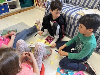 Nous pouvons donc nous appuyer sur les connaissances et habiletés qu’ils ont déjà pour les amener à poursuivre ce travail en lisant des livres plus longs, c’est-à-dire au fil de leur lecture. Ils vont continuer de faire ce qu’ils font déjà, mais de façon plus sophistiquée, plus élaborée. Par exemple, les élèves apprennent à continuer de faire le survol avant de lire le livre, mais d’une autre façon, plus complète. Ils peuvent faire plus de choses en lisant pour garder le fil, par exemple en notant des idées sur des post-its pour marquer le texte.