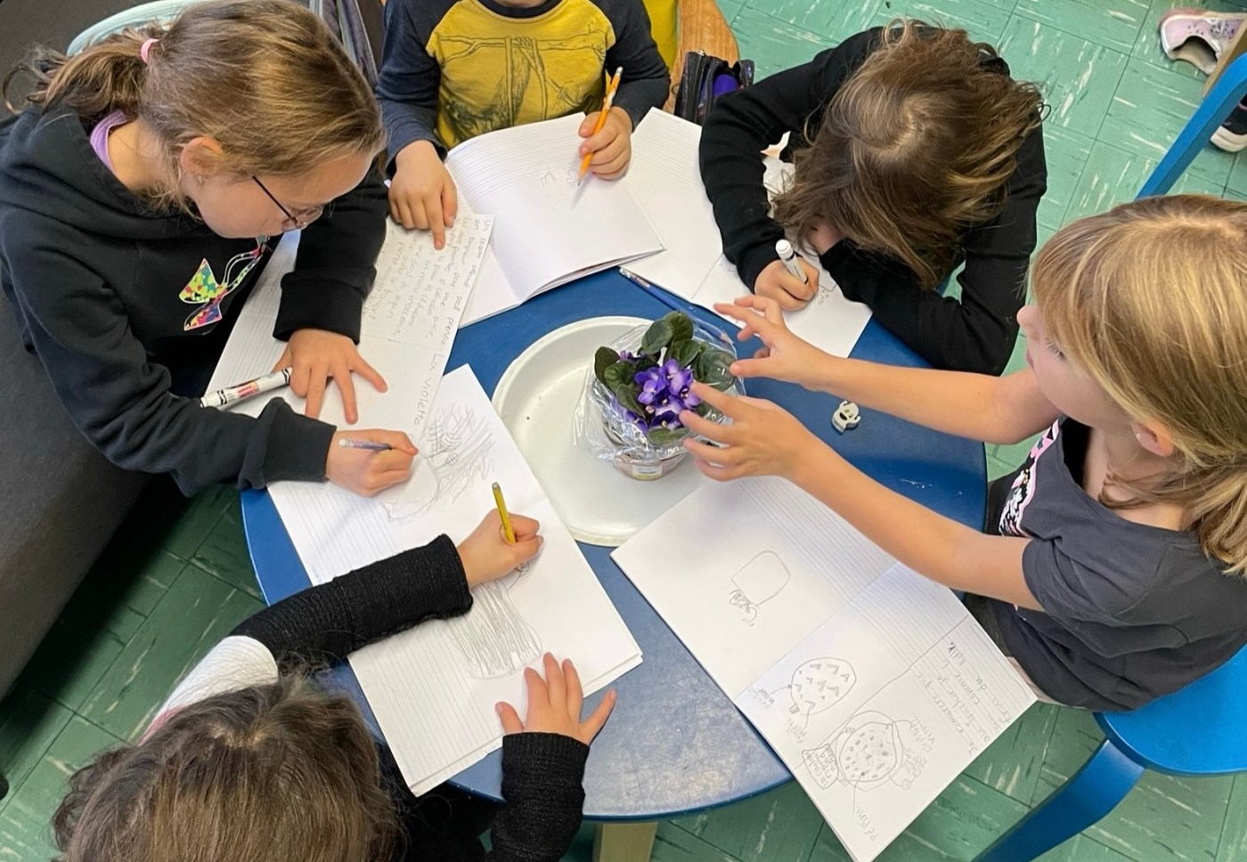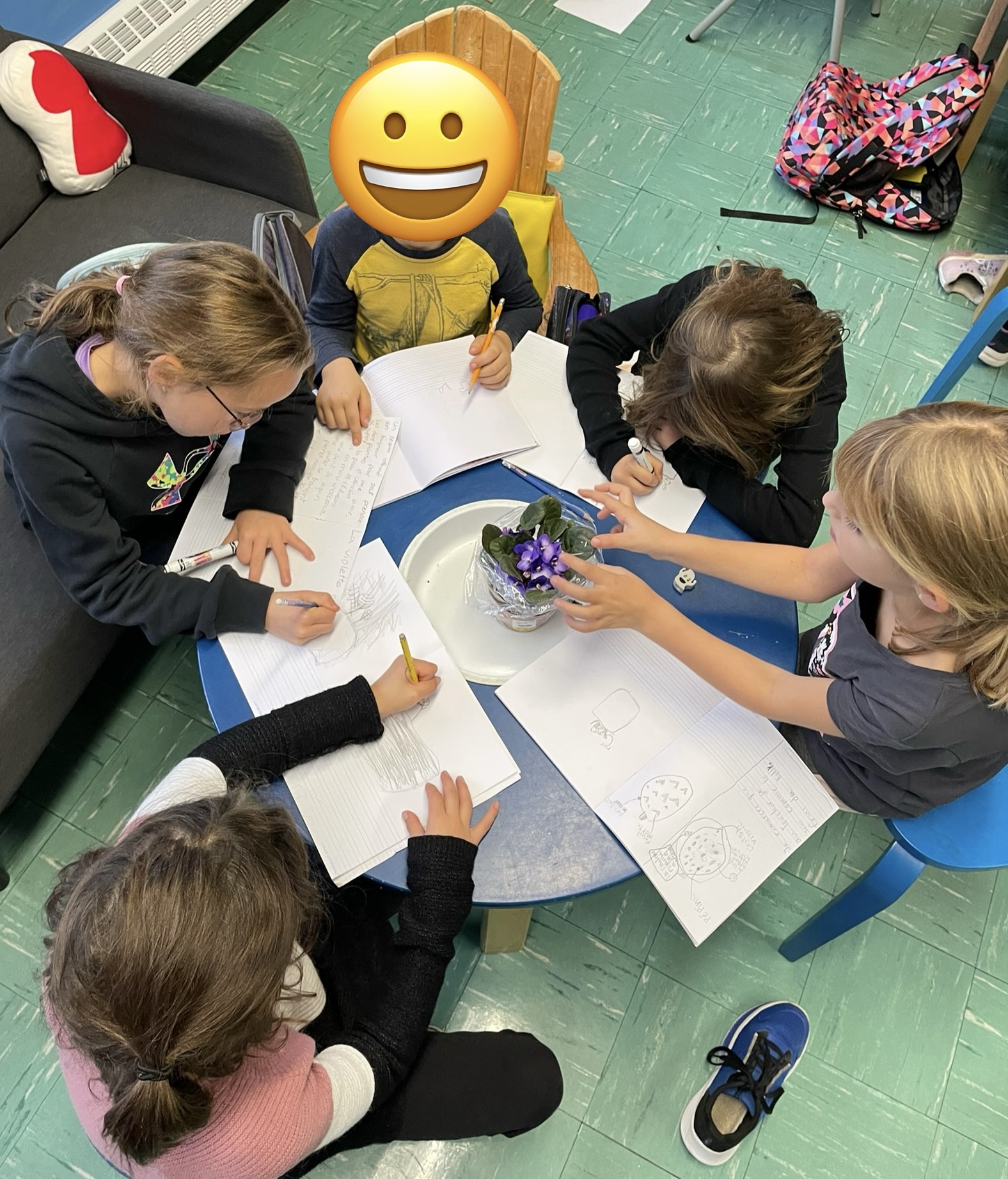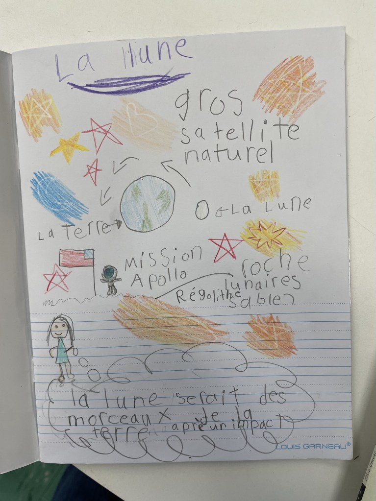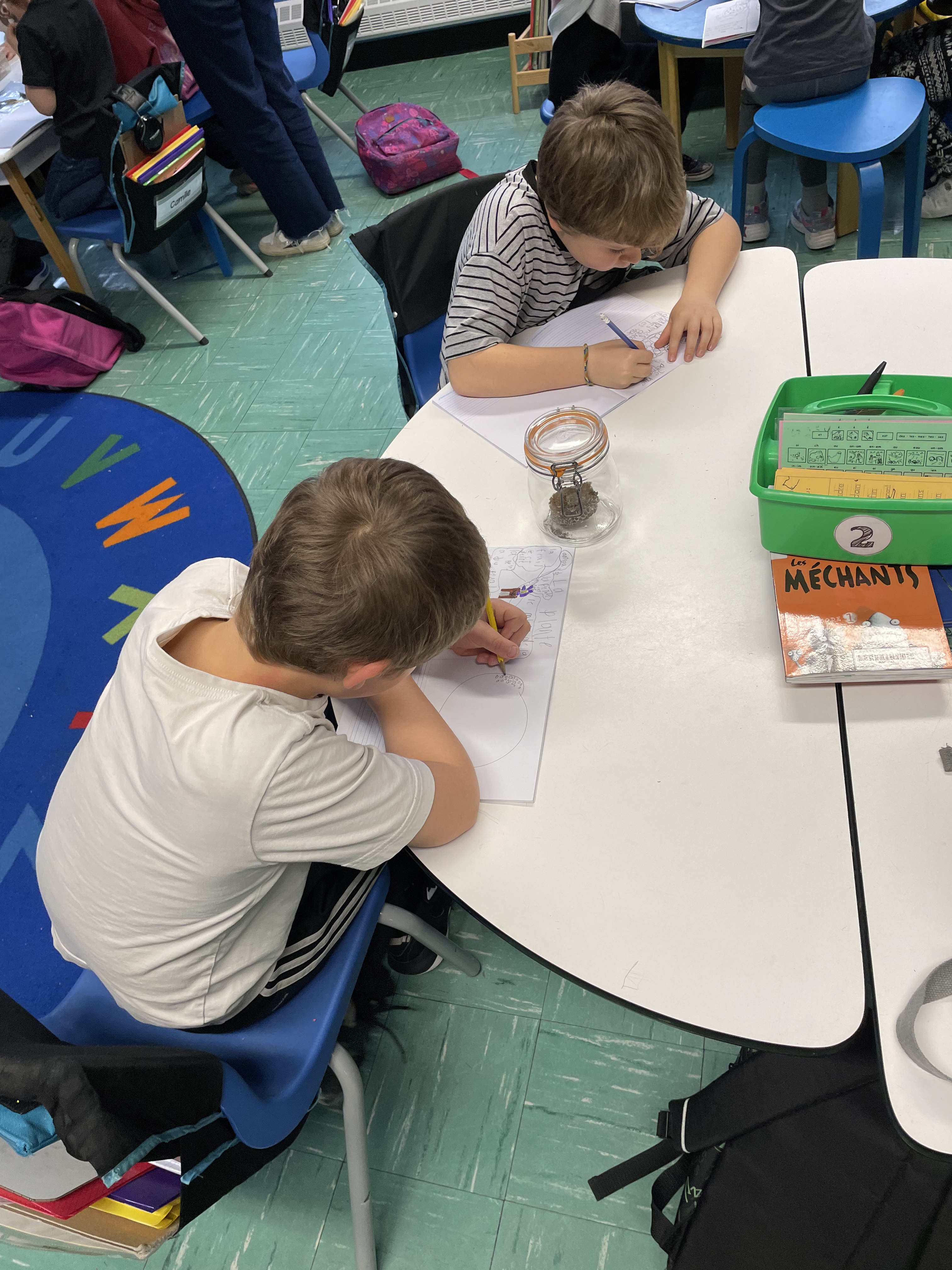 Une pratique intéressante pour maintenir notre niveau de curiosité est de tenir un journal afin de noter les informations qu’on ne veut pas oublier. Depuis la fin de la première année, les élèves possèdent un petit cahier que l’on a appelé Carnet scientifique. Les premières notes qui ont été prises dans leur carnet (à la fin de la 1re année) l’ont été à partir de l’écoute de courts documentaires trouvés sur le web. Les élèves ont appris à faire des croquis, des listes, des étiquettes et des flèches, et à résumer une idée en une phrase, car je modélisais des façons variées de garder des traces de nos apprentissages. Depuis, certains élèves ont développé l’habitude de noter dans leur carnet les informations qu’ils trouvent intéressantes lorsqu’ils lisent un documentaire. Ces temps-ci, ils éprouvent beaucoup de plaisir (et de sérieux!) à noter les observations qu’ils font de différents objets.