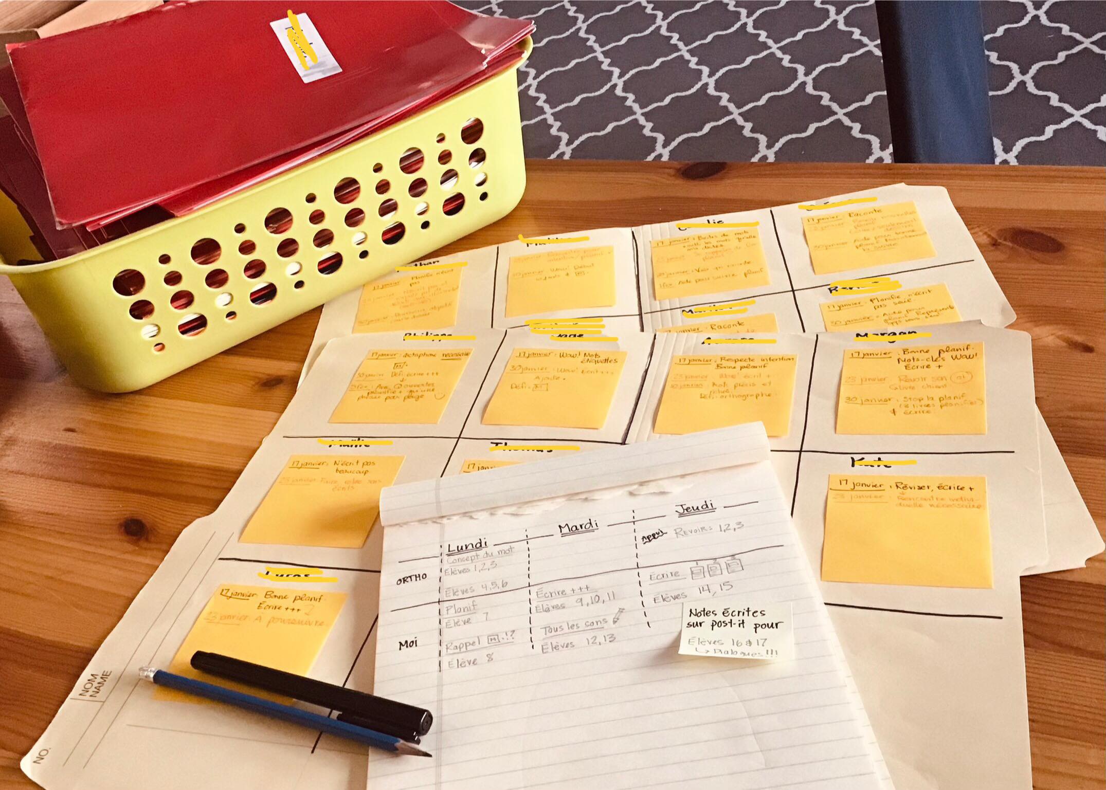 Atelier 3 : Tu es fier de toi mais cela n’efface pas la fatigue de fin de semaine. Tu laisses une note écrite sur les petits livres de 3 ou 4 élèves très forts sans le dire à tes collègues et tu rencontres individuellement les 2 élèves qui n’ont pas eu d’entretien cette semaine.