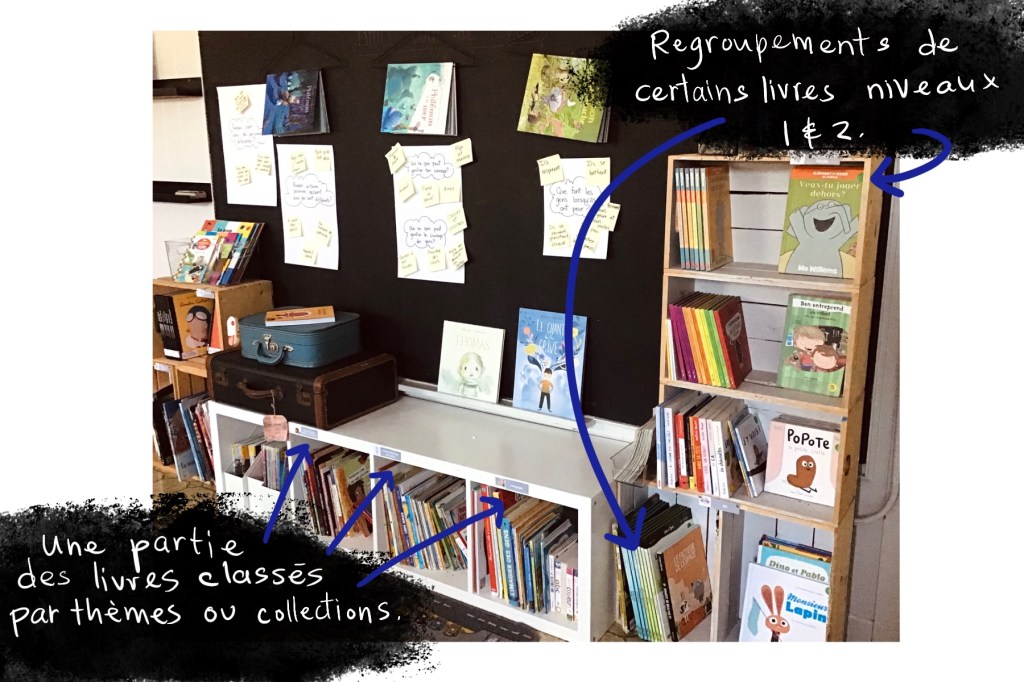 Bien excité de recevoir mes nouvelles bibliothèques, je suis allé reclasser mes livres à l’école (je sais, je pourrais le faire avec mes élèves). J’enseigne au premier cycle et je préfère de loin classer la bibliothèque par thèmes que par niveaux de lecture. J’ai fait ce choix après avoir lu La zone lecture (D’eux).