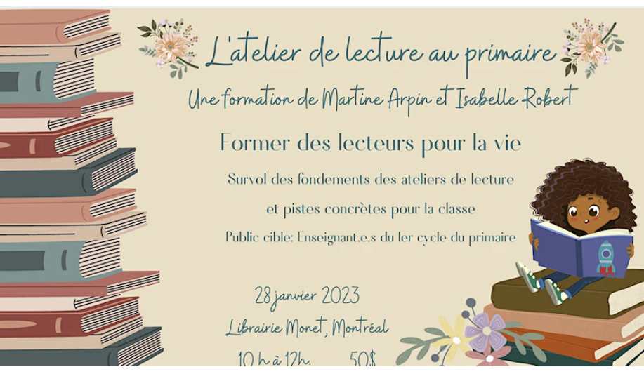 Nous offrons aussi des formations sur les entretiens individuels et en petits groupes, les outils pour soutenir l’apprentissage et l’autonomie, l’atelier de lecture, les différentes composantes d’un environnement riche en littératie, et d’autres sujets spécifiques liés aux ateliers.
